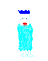 He has spikey hair, like a rock star. His head looks like a hut. Hes 4 inches tall and 2 inches wide. His two arms are 1 inch long and 1/4 inch wide. His legs are 1 1/2 inches long and 1/2 inch wide. His mouth is squiggly, asif he was frightened. His cross-eyed eyes are very small. His hair is very colorful - pink, orange, blue, yellow and green.
